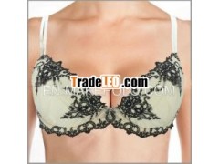 Elegant Embroidered Padded Underwire Plunge Bra X1084